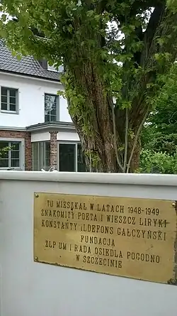 - W Szczecinie, w domu przy ul Marii Skłodowskiej-Curie 17, gdzie poeta wraz z rodziną mieszkał w latach 1948–1949, znajduje się tablica pamiątkowa.