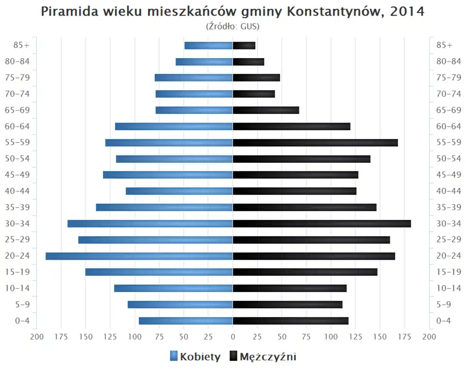 - Piramida wieku mieszkańców gminy Konstantynów w 2014 roku[7].