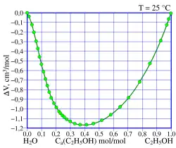 Przykładem mieszaniny, która ma mniejszą objętość niż użyte do jej sporządzenia składniki, jest mieszanina wody i etanolu[1] (alkoholu etylowego). Za kontrakcję objętości odpowiedzialne są w tym przypadku wiązania wodorowe powstające pomiędzy atomami wodoru grupy hydroksylowej etanolu a wolnymi parami elektronowymi na atomie tlenu w cząsteczce wody.
