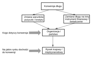 Do transakcji konwersji długu zalicza się też niekiedy zmianę długu na obligacje (debt for bond swap) oraz wykup długu przez kraje dłużnicze (buy-backs).