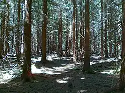 - ↑ Drzewostan całego Obszaru Chronionego Krajobrazu Jesioniki obejmuje: świerk pospolity 84%, buk zwyczajny 10%, modrzew europejski 1,5%, klon jawor 1,1%, brzoza 1%, olsza czarna 0,8%, kosodrzewina 0,4%, olsza szara 0,3% (jodła pospolita, jesion wyniosły i lipa) 0,2%, sosna zwyczajna 0,1%, pozostałe (sosna błotna, dąb, grab, klon zwyczajny, wiąz, jarząb, olsza zielona, topola osika, topola i wierzba iwa) 0,2% (→ Analýza vlivu lesního hospodaření na lesní ekosystémy v CHKO Jeseníky. hnutiduha.cz ↓).