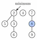 Operacja znajdowania minimum jest teraz trywialna, ponieważ ciągle pamiętamy wskaźnik na minimalny element. Warto zauważyć, że operacja ta nie modyfikuje nam kopca.