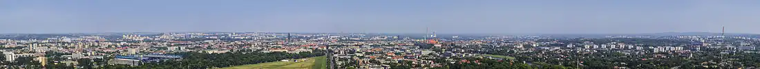 ![]() Kopiec Kościuszki w Krakowie, wraz z kaplicą bł. Bronisławy, widok z południa, 2016 | |