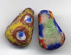 Szkło pokruszone na proszek jest mieszane ze spoiwem, takim jak ślina lub guma arabska rozpuszczona w wodzie. Dekoracje na nich wykonuje się z przygotowanej masy szklanej, tj. pokruszonego szkła zmieszanego ze spoiwem przez nakładanie jej ostrym narzędziem, zwykle stalową igłą. Koraliki są umieszczane w małych pojemnikach, często puszkach po sardynkach i podgrzewane w celu stopienia szkła na otwartym ogniu bez formy[2].
