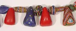 Z koralików tradycyjnie robiono bransoletki, przyszywano je do skórzanych pasków i tworzono tradycyjne zestawy. Uważa się, że ich wzory chronią i zwiększają płodność właścicieli. Trójkątne i okrągłe były noszone jako ozdoby do włosów, a tradycyjne zestawy mogły składać się z dwóch zestawów po trzy trójkąty, jeden niebieski, jeden czerwony i jeden wielokolorowy, noszone na wysokości skroni[4]. Małych okrągłych lub spłaszczonych koralików używano jako ozdoby do włosów lub wykonywano z nich naszyjniki w różnych kombinacjach z innymi szklanymi lub kamiennymi koralikami, które powstawały przez ozdobienie czerwonego, niebieskiego lub białego wstępnie uformowanego szklanego „rdzenia”. Dekoracje ze szlamu szklanego, które były nakładane na koraliki z XIX wieku, prawdopodobnie były pochodzenia czeskiego. Mniejsze, o kształcie cygara lub cylindryczne koraliki często powstawały z dwóch lub nawet trzech formowanych kulek. Dlatego są delikatne i łatwo się rozpadają[5].