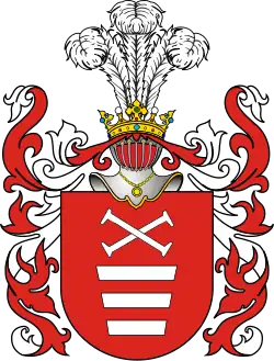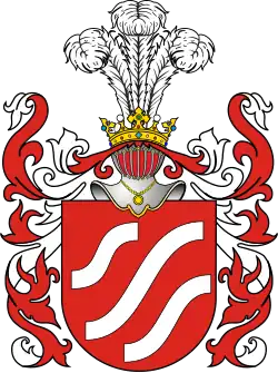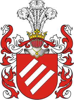 - ↑ Kasper Niesiecki, Herbarz polski. Powiększony dodatkami z poźniejszych autorów rękopismów, dowodów, urzędowych i wydany przez Jana Nep. Bobrowicza, t. V, Lipsk: Breitkopf i Haertel, 1840, s. 224 [dostęp 2025-02-25] (pol.).