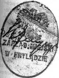 - ↑ Aleksandra Starczewska-Wojnar, Odciśnięta pamięć wspólnoty: prawne i komunikatywne funkcje pieczęci gmin wiejskich na przykładzie zachodnich powiatów rejencji opolskiej w latach 1816-1933 = Sealed memory of the community: legal and communicative functions of rural seals based on the example of western districts of the Regierungsbezirk Oppeln in 1816-1933 = Abdrücke eines kollektiven Gedächtnisses: rechtliche und kommunikative Funktionen der Germeindesiegel am Beispiel der westlichen Landkreise der Regierung Oppeln in den Jahren 1816-1933, Archiwalne źródła tożsamości, Opole: Archiwum Państwowe w Opolu : Uniwersytet Opolski, 2020 (4), s. 204, ISBN 978-83-956475-6-7, OCLC on1285427022 [dostęp 2025-03-06] (pol.).