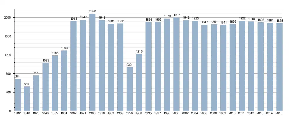 Według danych GUS z 1 stycznia 2024 r. miasto było zamieszkane przez 1689 osób[1].