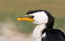 Kormoran białolicy[4] (Microcarbo melanoleucos) – gatunek dużego ptaka wodnego z rodziny kormoranów (Phalacrocoracidae). Zamieszkuje głównie kontynent australijski, gdzie jest pospolity. Można go spotkać także na Nowej Gwinei, Nowej Zelandii, w Indonezji i na pobliskich wysepkach południowo-zachodniego Pacyfiku oraz na obszarze subantarktycznym. Jest to niewielki, krótkodzioby kormoran, zazwyczaj ubarwiony czarno na grzbiecie i biało poniżej. Ma żółty dziób i niewielki grzebień.