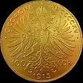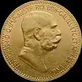 | 100 koron | 1909, 1910, 1911, 1912, 1913, 1914, 1915 | złoto 900 | 33,8753 g | 37 mm | ![]() |