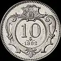 | 10 halerzy | 1892, 1893, 1894, 1895, 1907, 1908, 1909, 1910, 1911 | nikiel | 3,0 g | 19 mm | ![]() |