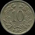 10 halerzy | 1915, 1916 | miedzionikiel | 3,0 g | 19 mm | ![]() | |
