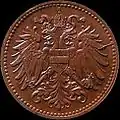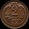 | 2 halerze | 1892, 1893, 1894, 1895, 1896, 1897, 1898, 1899, 1900, 1901, 1902, 1903, 1904, 1905, 1906, 1907, 1908, 1909, 1910, 1911, 1912, 1913, 1914, 1915 | brąz | 3,32 g | 19 mm | ![]() |