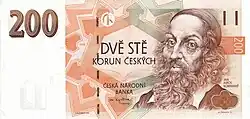 200 Kč | 146 x 69 mm | Pomarańczowy | Jan Ámos Komenský |