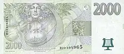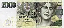 2000 Kč | 164 x 74 mm | Szarozielony | Ema Destinnová |