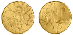 - ↑ Wycofanie banknotu 20 CZK. [dostęp 2007-06-23]. [zarchiwizowane z tego adresu (2007-06-23)].