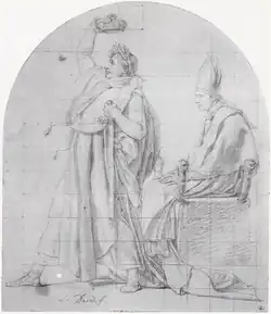 - Malarz Jacques-Louis David siedzący na trybunach.