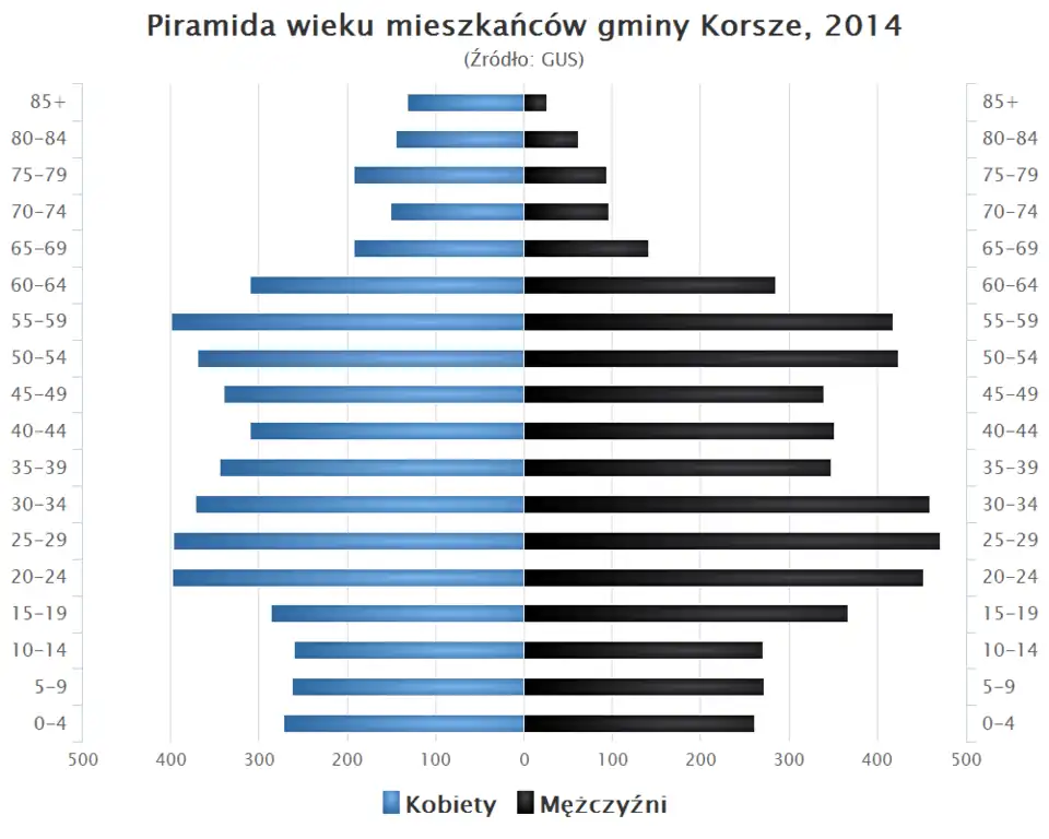 - Piramida wieku mieszkańców gminy Korsze w 2014 roku[1].