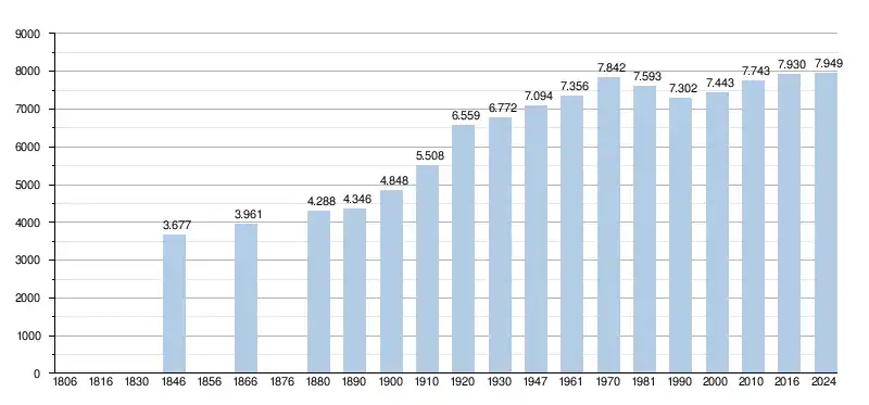 - Źródła: NIS, od 1806 do 1981= według spisu; od 1990 liczba ludności w dniu 1 stycznia