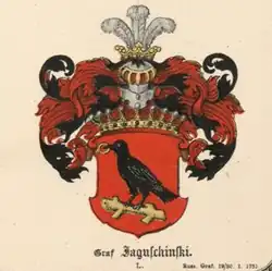 - Herb Jaguschinski hrabia, (zgermanizowane, być może Jagodyński, Jagodziński, Jagusiński, Jagużyński vel Jahodyński).