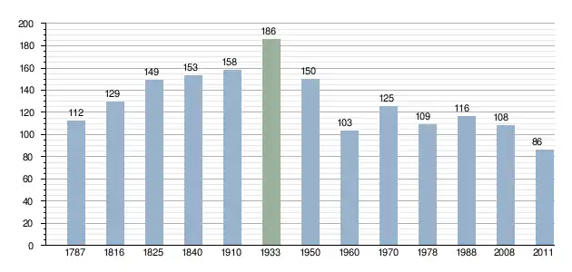- ↑ Dane na podstawie: F. W. Zimmermann, Beyträge zur Beschreibung von Schlesien, Bd. 1-13, Brieg 1783-1796; Roczniki statystyczne województwa wrocławskiego (1950-1975), roczniki statystyczne województwa wałbrzyskiego (1975-1998), powszechnych spisów ludności i urzędu gminy wiejskiej Kłodzko