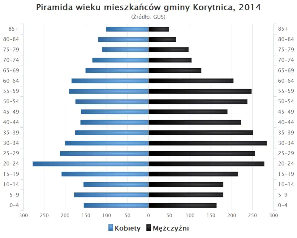 - Piramida wieku mieszkańców gminy Korytnica w 2014 roku[6].