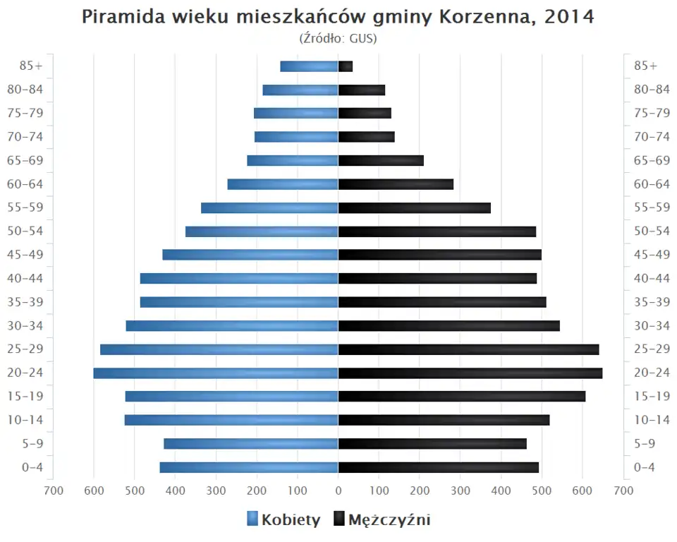 - Piramida wieku mieszkańców gminy Korzenna w 2014 roku[1].
