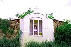- Kapliczka przydrożna z pierwszej połowy XIX wieku. Czworoboczna, murowana, tynkowana, kryta dwuspadowym daszkiem. W środku ludowa figura Chrystusa Frasobliwego.