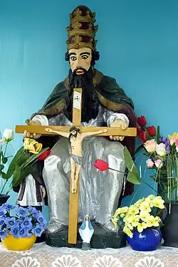 - Barokowo-ludowa rzeźba Trójcy Świętej w postaci Tronu Łaski, znajdująca się w dwudziestowiecznej kapliczce murowanej.