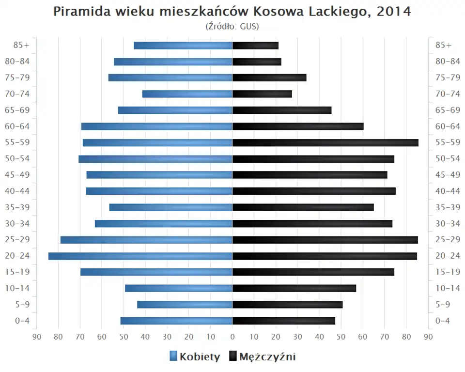 - Piramida wieku mieszkańców Kosowa Lackiego w 2014 roku[1].