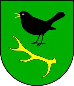 Flagę oparto na barwach herbu miejscowości; zgodnie z regułami tworzenia flag heraldycznych, jej płat podzielony jest na trzy równe pasy poziome o następujących barwach: czarna (kos), żółta (róg), zielona (tarcza). Proporcje boku krótszego (wysokości) do boku dłuższego (szerokości) wynoszą 5:8.