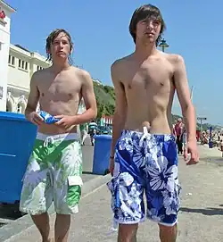 Luźne spodenki wykonane z nieprzylegających materiałów, z dłuższymi nogawkami, sięgającymi nawet kolan[28] |