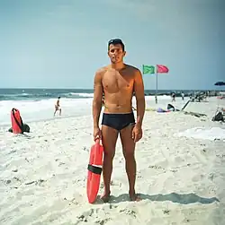 Zmiany objęły także męski strój kąpielowy. W latach 20. wciąż jeszcze w wielu miejscach poczucie przyzwoitości wymagało zakrywania męskiej piersi, jednak stroje stały się bardziej wycięte, wzorując się na kostiumach pływaków, dla których większa odkryta powierzchnia ciała oznaczała mniejsze tarcie, a więc i większą szybkość. Gdy australijska firma Speedo w 1928 roku opracowała kostium wykonany z jedwabnej dzianiny, z dużymi wycięciami z boków, z tyłu mający tylko elastyczny pasek, wzór ten został bardzo szybko rozpowszechniony w kostiumach kąpielowych. Lata 30. przyniosły dalsze zmiany. Widok nagiego męskiego torsu przestał szokować i kostium kąpielowy przybrał kształt dość obcisłych spodenek z króciutkimi nogawkami, choć jeszcze do ok. roku 1935 niektórzy amerykańscy producenci oferowali kostiumy z odpinanym przednim panelem zakrywającym piersi lub z dodatkową koszulką, by umożliwić korzystanie z plaży czy basenu w miejscach, gdzie obowiązywały bardziej restrykcyjne przepisy dotyczące ubioru[9].