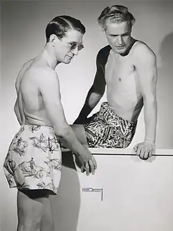 Kąpielówki miały paski, kieszenie czy kontrastujące wstawki, które miały odróżniać je od bielizny. W latach 40. XX wieku w USA popularne stały się też luźniejsze, wzorowane na spodenkach bokserskich szorty, często wzorzyste. Ich plażowym uzupełnieniem była sportowa koszulka[9].