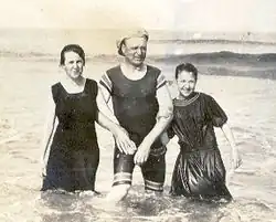 Na przełomie XIX i XX wieku, w miarę rozpowszechnienia się pływania jako sportu, pojawił się też kostium pływacki. Czarne, wełniane kostiumy męskie były zbliżone do tych kąpielowych. Ten krój został także zaadaptowany przez pływaczki, choć początkowo tego rodzaju ubiór, kojarzący się też z cyrkowym trykotem, nie był powszechnie akceptowany, mimo uzupełniania go o długie, czarne pończochy. Annette Kellerman, australijska pływaczka długodystansowa, znana także z pokazów fantazyjnego nurkowania, w 1907 roku została aresztowana za pokazanie się w takim kostiumie na bostońskiej publicznej plaży. Niemniej w roku 1912, podczas igrzysk olimpijskich w Sztokholmie, gdy po raz pierwszy przeprowadzono zawody w pływaniu kobiet, zawodniczki wystąpiły właśnie w obcisłych, dzianinowych kostiumach i od tej pory tego rodzaju strój sportowy zyskał społeczną akceptację, choć w niektórych miejscach walczono z nim nawet do lat 20. XX wieku[7].