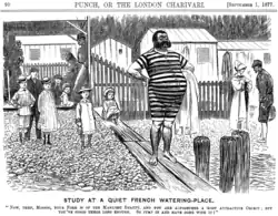 Wakacje w modnych kurortach nadmorskich wymagały też odpowiednich strojów. Paryscy kreatorzy mody, jak np. Jean Patou, Jeanne Lanvin czy Elsa Schiaparelli, projektowali kostiumy jedno- i dwuczęściowe, składające się z obcisłej góry i spodenek i mające śmiałe, geometryczne wzory w kontrastujących kolorach. Wyposażenie uzupełniały plażowe sukienki i piżamy, czepki kąpielowe i kapelusze do ochrony przed słońcem, plażowe obuwie i sandały, parasole i duże płócienne torby[8].
