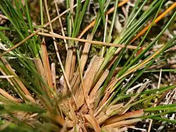 - W części szczytowej szorstkie, koliste w przekroju, 7–11-nerwowe, z 5–9 żebrami, zakończone kolcem, odpadające na zimę od pochew, o spłaszczonych skrajnych żebrach. Sklerenchyma w postaci jednolitego pierścienia[5].