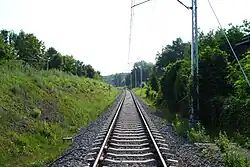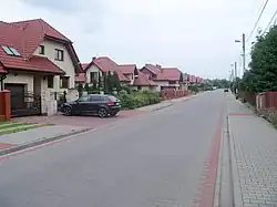 - Od zachodu – granica biegnie od punktu załamania się granicy miasta do przepustu wodnego pod torami kolejowymi na styku z ulicą Sołtysią i dalej kieruje się w kierunku ulicy Warsztatowej; biegnie ona dalej drogą równoległą na południe od ulicy Warsztatowej do przecięcia z ulicą Armii Krajowej, następnie tą ulicą do budynku nr 356, okalając go od południa i zachodu do ulicy Zachodniej, okalając budynki przy niej położone od północy; na wysokości budynku nr 20 granica skręca na północ do ulicy K. Stabika na wysokości posesji nr 55; następnie przebiega ona północną stroną tej ulicy, obejmując wszystkie nieruchomości przy tej ulicy, kierując się dalej na zachód do linii kolejowej; dalej granica skręca na północ na odcinku linii kolejowej od Rowu Granicznego do ulicy Tunelowej.