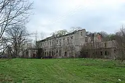 - pałac, neoklasycystyczny XIX-wieczny, w złym stanie technicznym, na krótszej osi ryzality, do 1994 mieściła się tu biblioteka. Obok folwark z kuźnią podcieniową z końca XIX w[5].