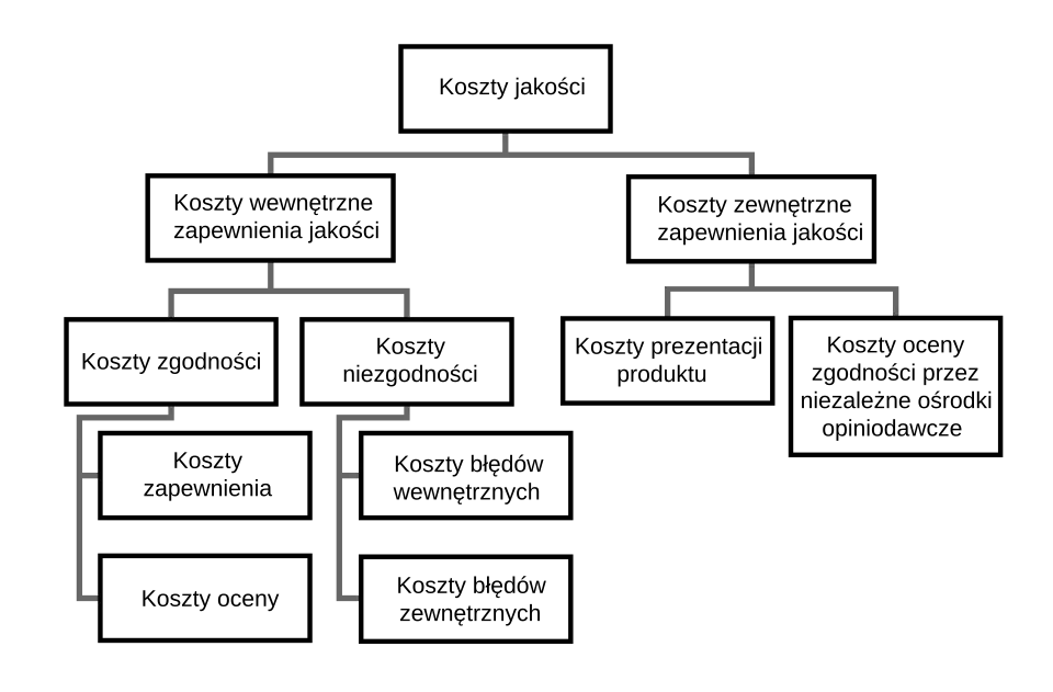 Zgodnie z filozofią kompleksowego zarządzania jakością koszty jakości można podzielić na trzy rodzaje: