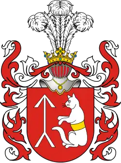 - ↑ Tadeusz Gajl: Herbarz polski od średniowiecza do XX wieku : ponad 4500 herbów szlacheckich 37 tysięcy nazwisk 55 tysięcy rodów. L&L, 2007, s. 85. ISBN 978-83-60597-10-1.