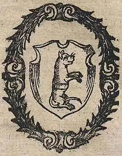 - ↑ Tadeusz Gajl: Herbarz polski od średniowiecza do XX wieku : ponad 4500 herbów szlacheckich 37 tysięcy nazwisk 55 tysięcy rodów. L&L, 2007, s. 363. ISBN 978-83-60597-10-1.