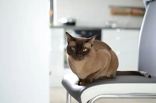 Uszy Uszy u kota burmańskiego są szeroko rozstawione, grubsze u nasady, ku górze zwężają się i są okrągło zakończone; postawione lekko ku przodowi.