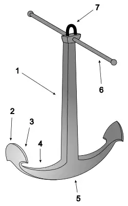 - kotwica jednołapowa, kotwica czterołapowa (tzw. rybacka lub drapak),