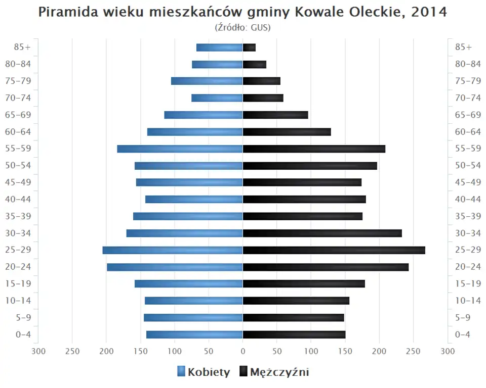 - Piramida wieku mieszkańców gminy Kowale Oleckie w 2014 roku[1].