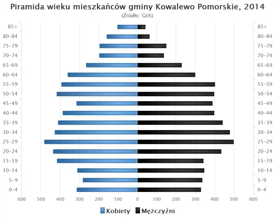 - Piramida wieku mieszkańców gminy Kowalewo Pomorskie w 2014 roku[1].