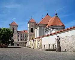 - Kościół Wniebowzięcia NMP (tzw. kościół Witolda), gotycki, z pocz. XV w., najstarszy w Kownie, fundowany prawdopodobnie przez wielkiego księcia Witolda po bitwie nad Worsklą w 1399 r., pierwszy raz wzmiankowany w 1439 r. jako franciszkański[25], pierwotnie bezwieżowy[2]