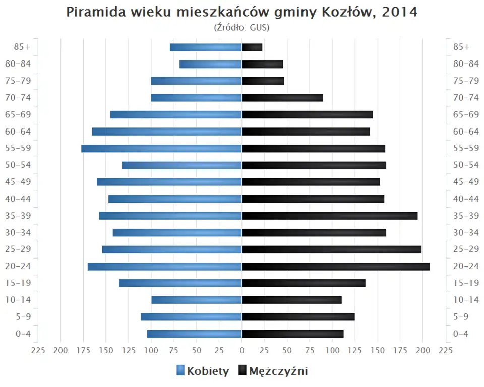 - Piramida wieku mieszkańców gminy Kozłów w 2014 roku[2].
