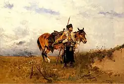 - ↑ Kozacy walnie przyczynili się do polskich zwycięstw w dobie tzw. dymitriad, marszu królewicza Władysława na Moskwę w 1618 r., a także odsieczy smoleńskiej prowadzonej przez Władysława IV w czasie wojny między Rzecząpospolitą a Rosją w latach 1632–1634, K. Tyszkowski, Kozaczyzna w wojnach moskiewskich Zygmunta III (1605–1618), Przegląd Historyczno-Wojskowy t.8 zeszyt 1, Lwów 1935; Wacław Lipiński, Działania wojenne polsko-rosyjskie pod Smoleńskiem od X 1632 do IX 1633 r., Przegląd Historyczno-Wojskowy 1932, t. V, z. 2, idem, Kampania zimowa 1633/34 i kapitulacja Szeina, ibidem 1935, t. VII, z. 2.