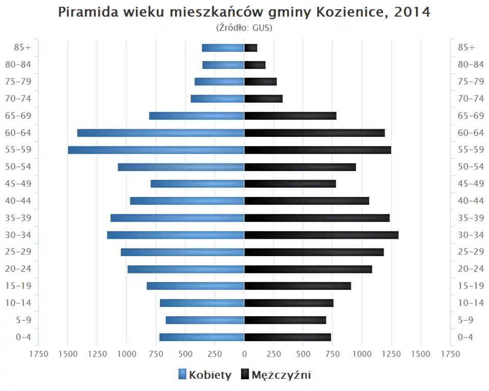 - Piramida wieku mieszkańców gminy Kozienice w 2014 roku[7].